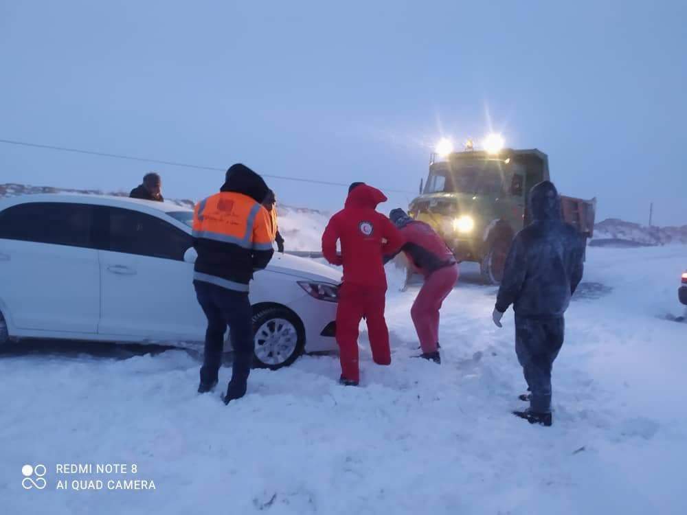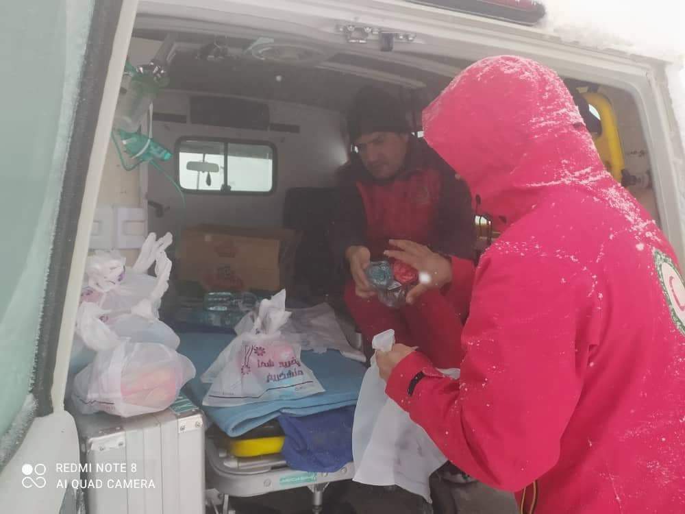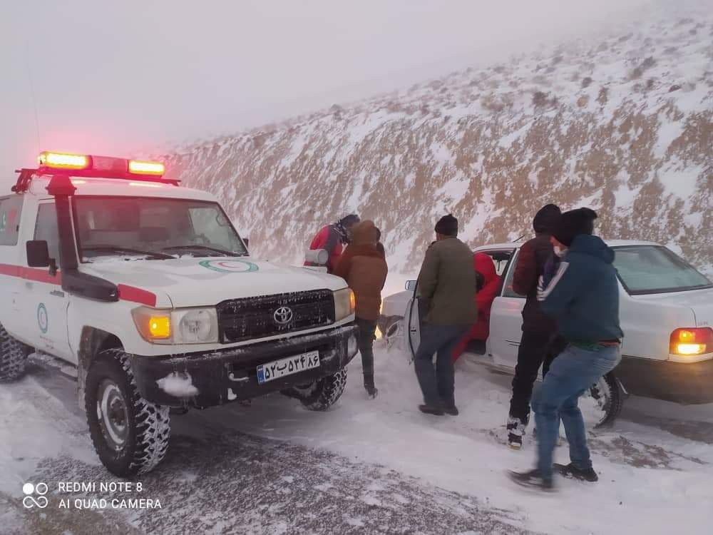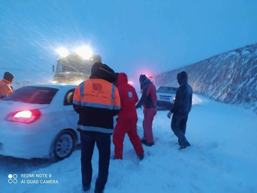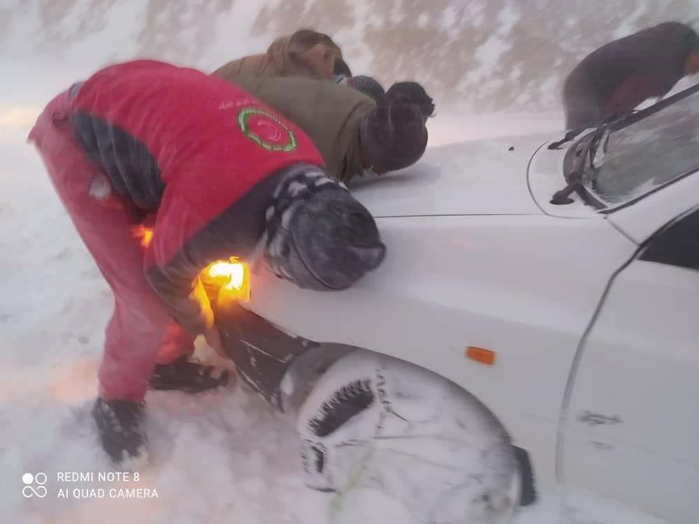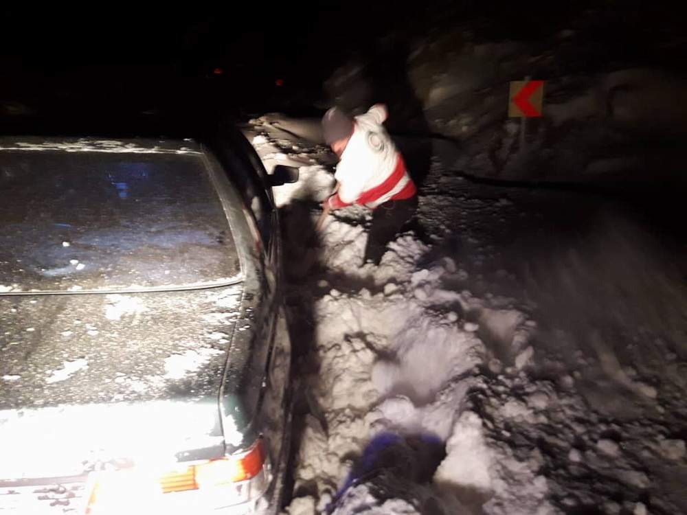 امدادرسانی جمعیت هلال احمر استان به مسافران گرفتار در برف + تصاویر